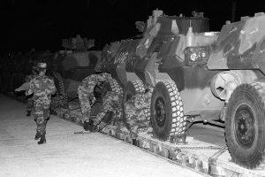 當(dāng)日凌晨,“和平使命-2010”聯(lián)合軍演中方參演部隊(duì)第一梯隊(duì)安全準(zhǔn)時(shí)抵達(dá)哈薩克斯坦境內(nèi)演習(xí)地域。新華社發(fā)