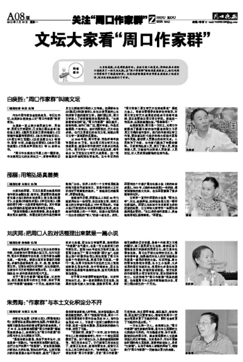 對于“周口作家群”崛起現(xiàn)象,劉慶邦說,自己雖然是周口的本土作家,但對于周口的“作家群”能撐起一片天地,起初并不抱有多大希望,因?yàn)樵谖膶W(xué)豫軍里,數(shù)南陽的“作家群”名氣最大,也是一支比較有實(shí)力的作家隊(duì)伍。直到2005年應(yīng)地方政府之邀,他回周口參加了“‘周口作家群’研討會”,也就是從那個時候開始很認(rèn)真地閱讀了周口本地每個作家的作品,真是不看不知道,一看嚇一跳,在周口這塊并不發(fā)達(dá)的土地上竟然活躍著幾百名作家,老中青相結(jié)合,而且優(yōu)秀的作品呈逐年遞增的態(tài)勢,說來可真是欣喜加驚喜。