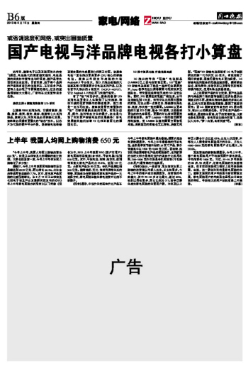 上半年 我國人均網(wǎng)上購物消費650元